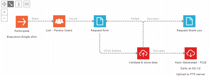 • Instant: the creation of the record in the export file, is done when a contact clicks a sensor. E.g. each time the contact fills in and submits a request form, a record is created for him in the export file.