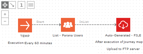 • Scheduled: As a reference, for a scheduled Email component (default setting), an email is created for each contact in the journey audience. Usually the Email component is directly linked after the Audience component. Likewise, a Data Export component will generate a record in the export file for each contact in the journey audience when the journey is executed (single shot, scheduled or triggered journeys).