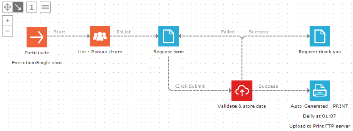 The Print component allows sending printed documents (Word format) directly to a network location (FTP), a mailbox (email address), or a local folder on the server. With the Print component, you can use Selligent Campaign to steer your offline communication. You can create personalized pages for contacts in a Word document for use when a contact falls in a target selection. Or when they fill out a request form in Selligent Campaign, you could send them an offline coupon. Or when they contact isn't active for a long time, you can try to re-activate them with offline communication.