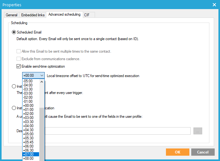 Note: STO is only available for scheduled emails in single shot journeys. It can't be activated for other channels than email.