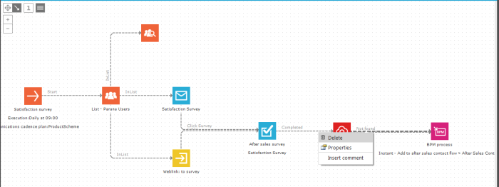 Choose the desired connector in the drop-down list and click the 'Select' button. Then a confirmation message is displayed to ensure that this connector has to be deleted. Validate by clicking the 'OK' button and the connector is removed from the journey canvas.