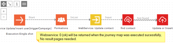With the Input component set to 'WebService' the journey is less extensive. But no distinction is made between an update or insert, the journey will always return "ok":