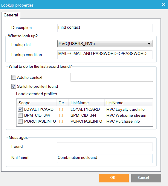 - This can be used to switch from an anonymous contact to a known contact. So when a contact is found, all further actions in the journey will use the contact's profile. In the login example, the person fills in the login form as an anonymous contact, if they are then identified as a known contact with the Lookup component, the journey continues using the known contact's profile data.