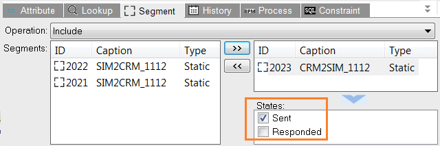 This functionality is originally derived from contacts imported from a SalesForce campaign (synced with the CRM connector). SalesForce contacts in a SalesForce campaign can have a certain state (e.g. 'sent' and 'responded'). When this SalesForce campaign is transferred to Selligent Campaign, the SalesForce Campaign becomes a static segment on the audience list, holding the SalesForce Campaign contacts. The SalesForce campaign states are transferred to an option list. This option list is linked to the static segment.