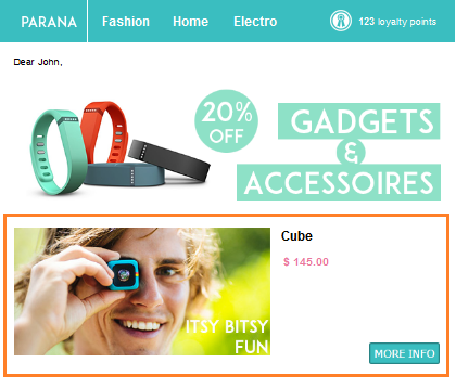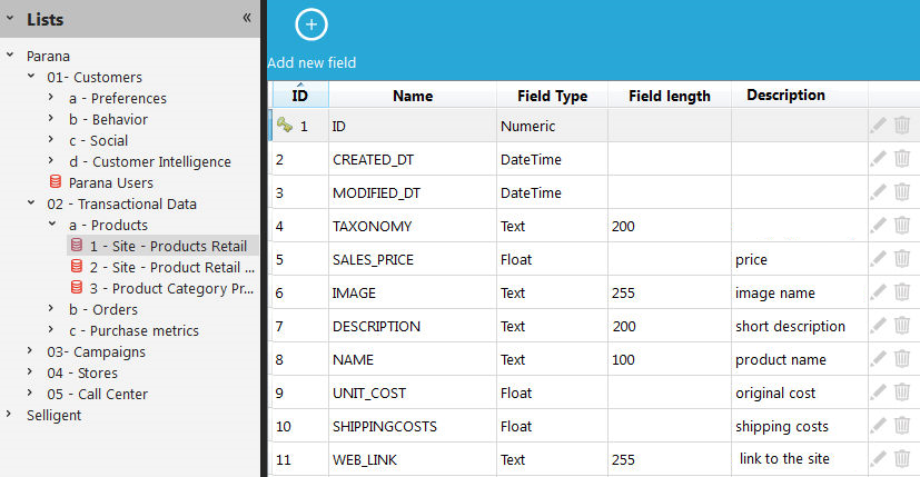 Article lists store data used in newsletter articles. The content differs depending on your business. For a publisher who sends a newsletter about news articles, the fields can be TITLE, DESCRIPTION, IMAGE, LINK, while a retailer who displays products in the newsletters, the fields can be PRODUCTNAME, DESCRIPTION, IMAGE, PRICE, etc. These fields are used in an "article container" in a email template, created in the editor.