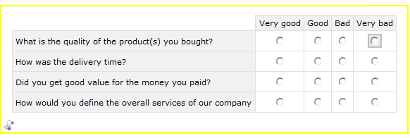 a matrix component with name Q001_FEEDBACK with 4 questions and 4 possible answers: