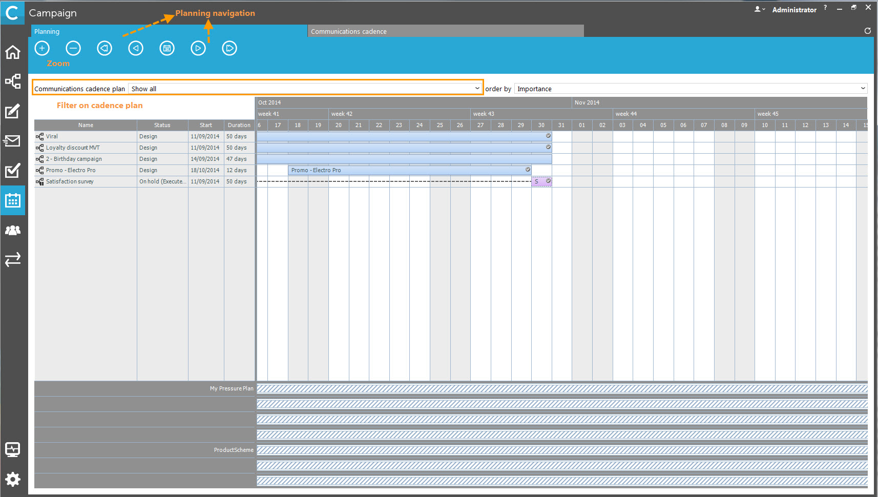 The planning tool, in combination with marketing pressure, results in additional information and possibilities. These are explained in the next topic: Communication Cadence.