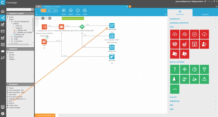 Interfaces are created from the Process entry/Interface tab in Selligent Campaign.