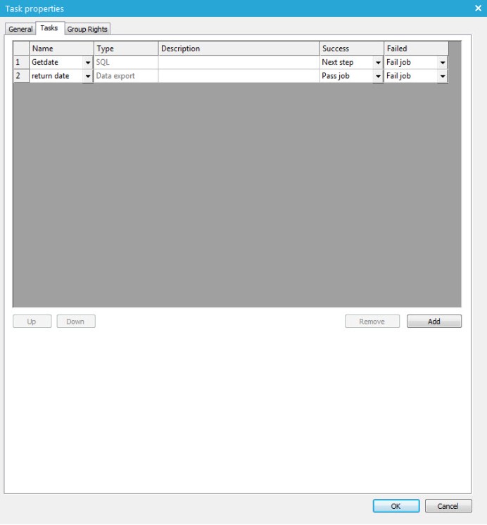 A Batch task is a series of subtasks that are executed sequentially. Its purpose is the same as for SQL tasks (aggregate data, update tables in the database, etc).