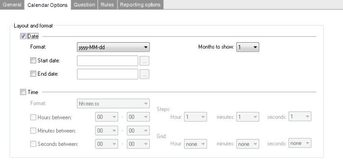 - Start date: the start date can be limited. it can be a fixed date, a sliding date, a date based on a user field or a formula