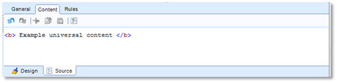 Use: universal content allows to add custom defined HTML content that is common to all languages.