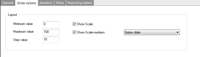 - Minimum value: starting value of the slider scale. Negative values are allowed.