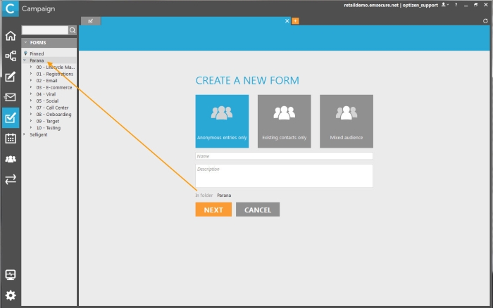 Anonymous entries only: form contacts which aren’t related to an audience list and are therefore not known in the application