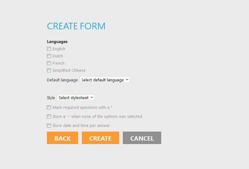 Set the different languages and select the default language for the form. Translations have to be created for the selected languages.
