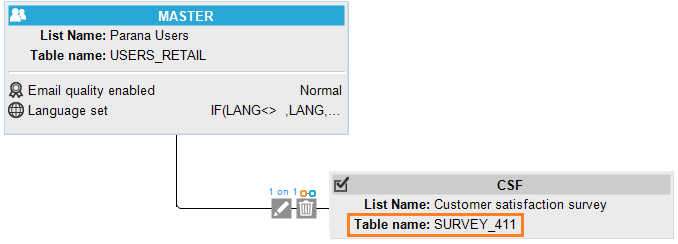 The relation between the audience list and the form data list is visible in the 'Lists' section. Select the audience list and the 'Relations' tab