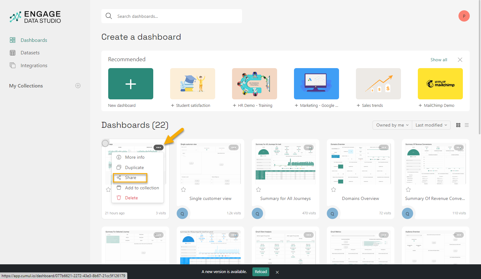 When creating new dashboards in Data Studio, you also want to make these available in Selligent.