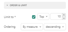 Sometimes you may have too many values to be displayed in the component. If that is the case, you can limit the values here . For a Bar chart, you can limit the number of bars displayed. For a Line chart, you can limit the number of observations. For a Pivot table, you can limit the number of rows or columns for example.