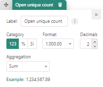 • Format - you can choose from a detailed numerical value (123), a percentage or a SI notion (e.g. K for thousands, M for millions)