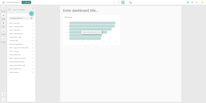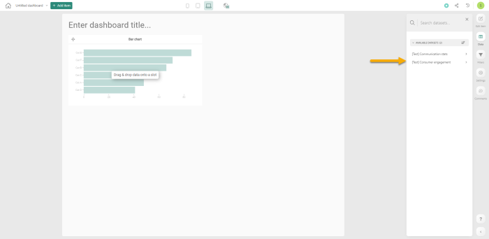 5. In order to use the proposed graph in your dashboard, you just need to drag & drop the graph onto your dashboard. After the graph is placed on the dashboard, you can still modify the data and/or the setup.