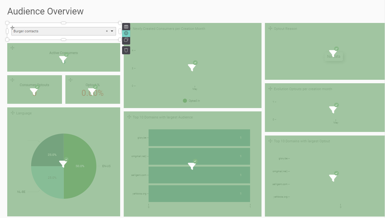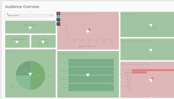 Note: When using a custom dataset for the dashboard, the column names in the external datasource referencing the Audience List and contacts must be configured as following: user_ID or consumer_ID as the contact reference and list_id or audience_id as the Audience List reference. This is required to identify the correct Audience List and contact records in Selligent when creating the static segment.