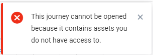 When trying to access journeys or content that are using assets in folders with no access, the user is informed and will not be able to open the journey or content. For example, accessing a journey using an audience list in a folder with no access.