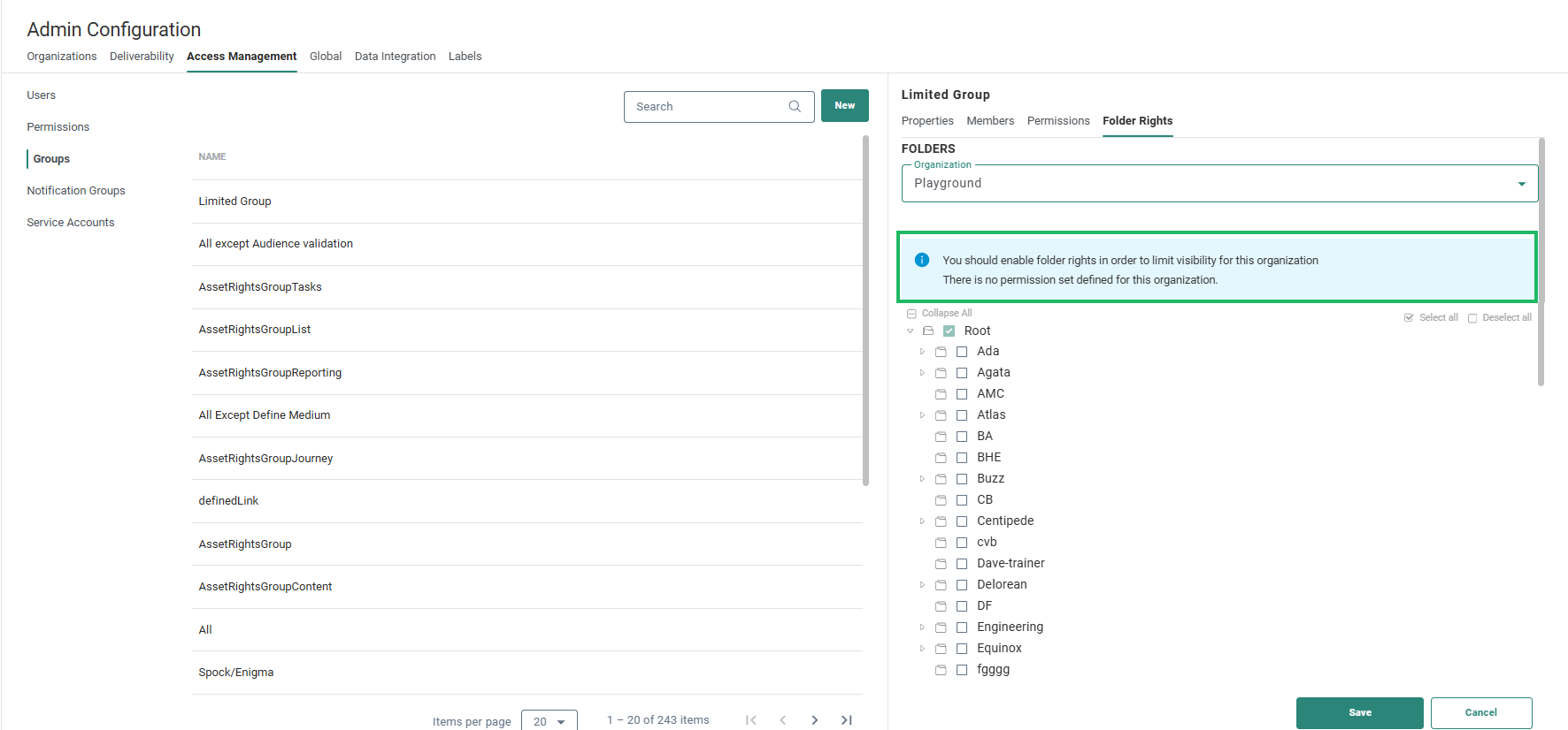 - When no folder rights claim is set for the group, this will result in users having access to all folders, regardless of the folder right configuration.