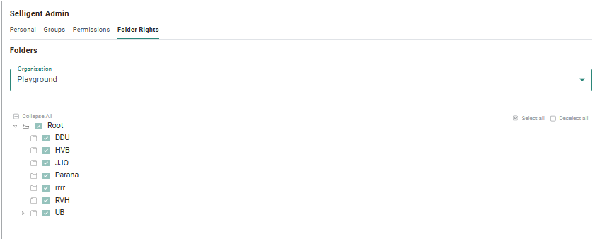 Expand the Root folder to visualize all folders and subfolders this user has access to. No changes can be made here.