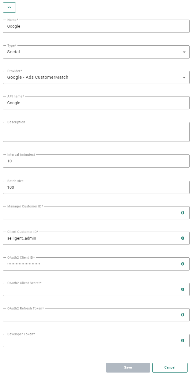 • Manager Customer ID * — Your Google Manager Customer ID. (* Only required for the Google Ads API)