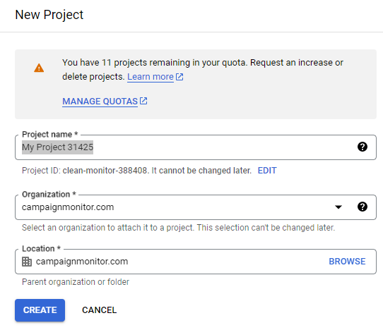 Warning: Each Google API Console project can be associated with the developer token from only one Manager Account. Once you make a Google Ads API request, the developer token is permanently paired to the Google API Console project. If switching to a developer token under a new Manager Account, you will need to create a new Google API Console project for Google Ads API requests that use the new Manager's token. If you do not use a new Google API Console project, you'll get a DEVELOPER_TOKEN_PROHIBITED error when making a request.