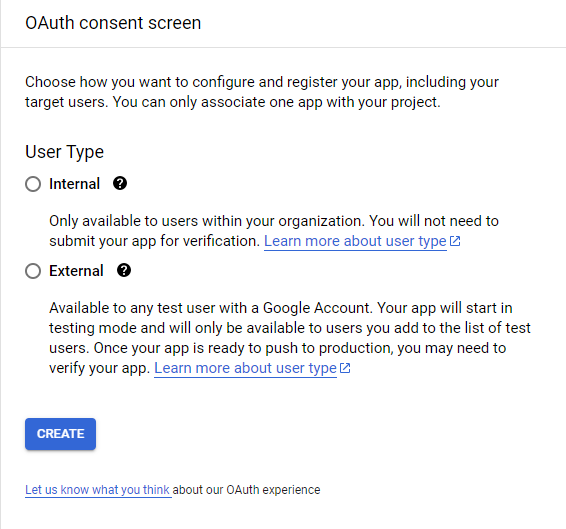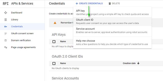 10. Once the Configure consent screen is complete, go back to credentials, click on Create credentials and select OAuth client ID: