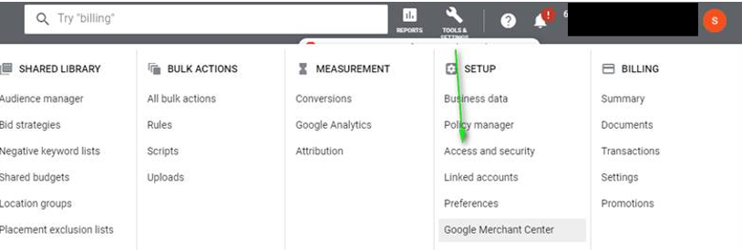 3. When you are in the portal of Google Ads, go to Tools and settings > Setup > API Center.