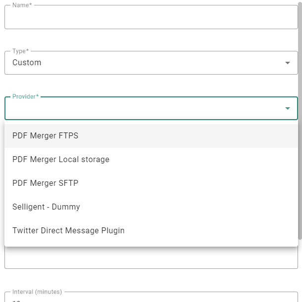 • Provider* — When you select Custom as the type of endpoint, you can select a specific plugin from a drop-down list here. The list of plugins displayed depends on the plugins installed on your environment. The parameters that need to be defined for a Custom Channel endpoint depend on the selected plugin.