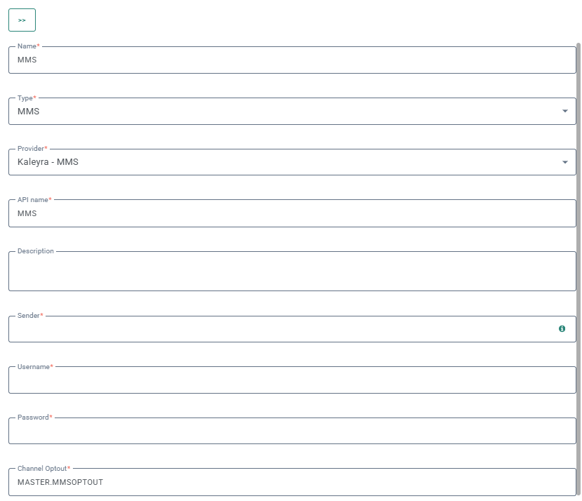 - Username and password or Token* — This is the authentication, which depends on the provider. It can be credentials linked to your MMS provider account, or an API authentication token.
