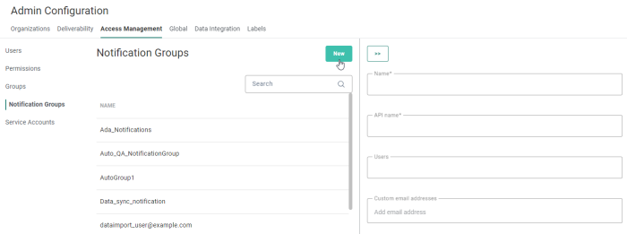 - Name* — Notification group name. Make it as explicit as possible to easily recognize it in the Data Exchange section.