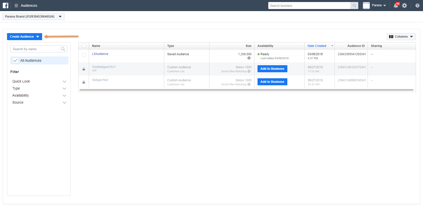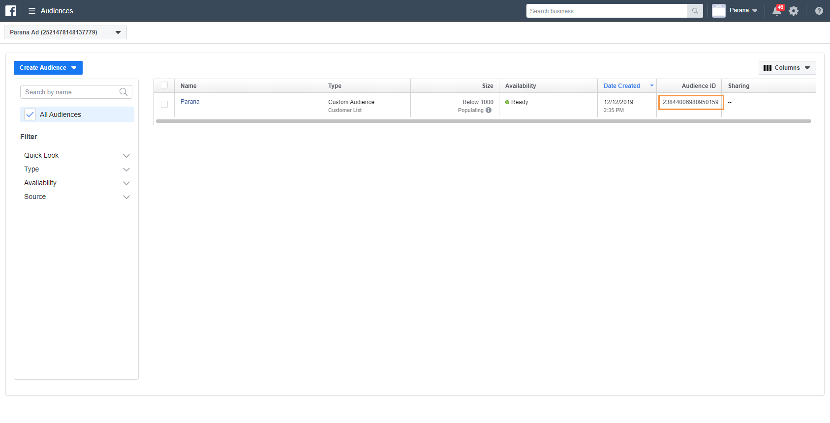 Create Facebook audience