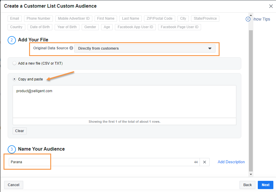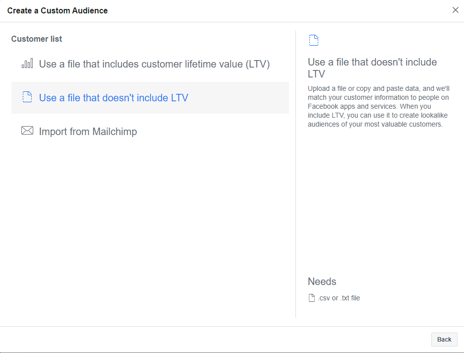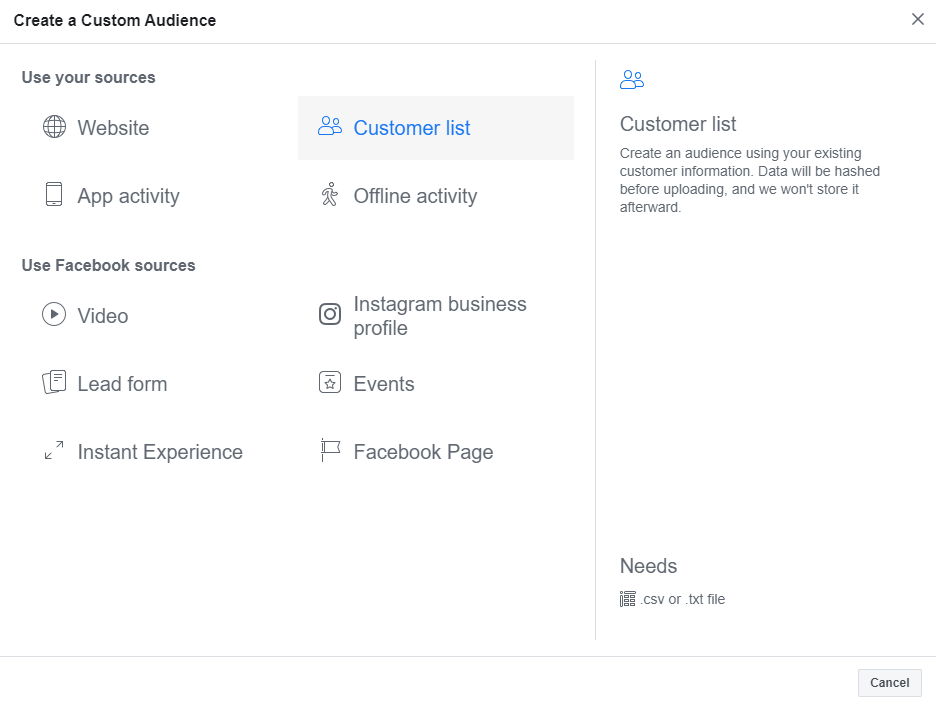 Choose to use a Customer list for the data.