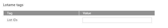 When selecting Lotame, a button 'Edit tags' is displayed. You can click this option to specify that the Selligent ID only be sent to the specific List IDs entered. If no List IDs are entered here, the Selligent ID will always be sent.