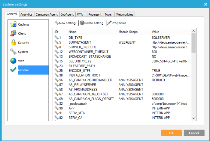 Both settings are configured in Campaign from the Configuration > Platform > System settings > General: