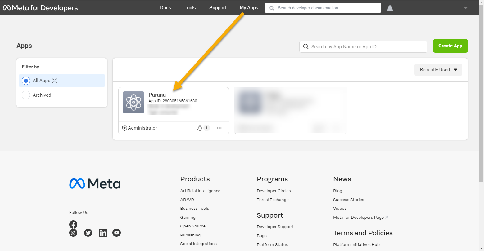 1. In the My Apps you must select a Meta application to associate the access token with.
