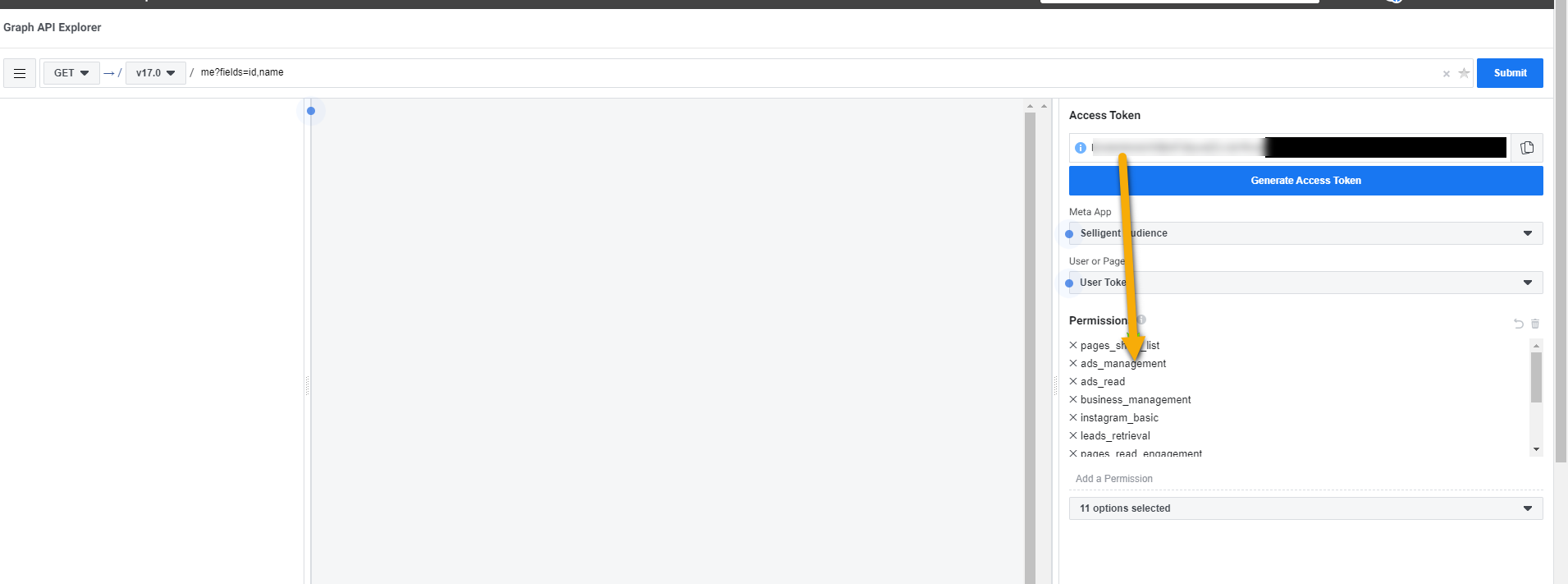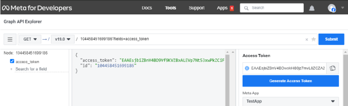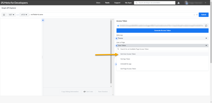 Currently you have the get the Meta User Access Token from Meta’s Graph API explorer at https://developers.facebook.com/tools/explorer.