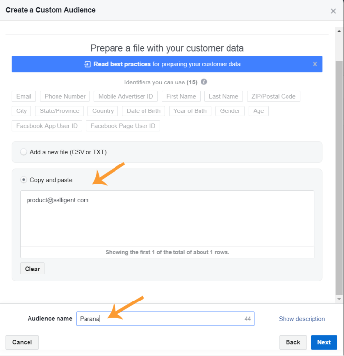 Note: Please also check the following Meta documentation for more info about the Custom Audiences integration at Facebook side, troubleshooting and more :