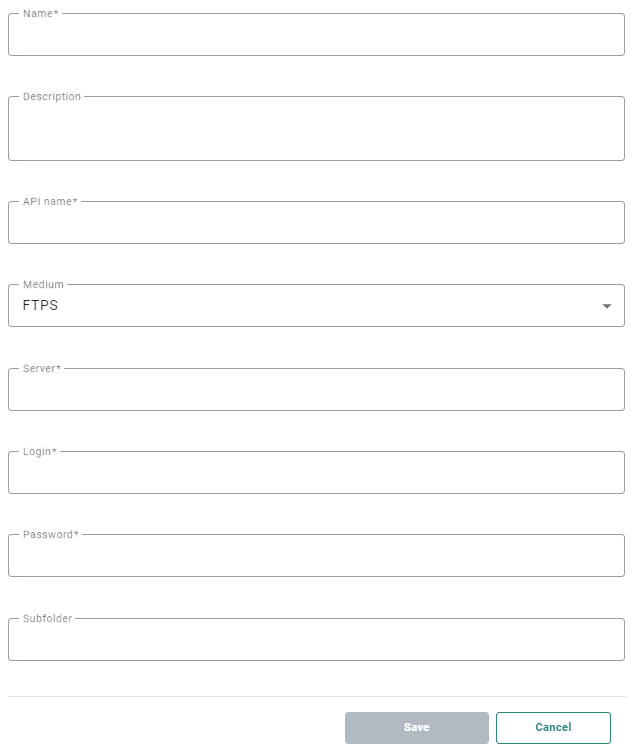 - Name* — Medium name. Make it explicit to easily recognize it in the Data Exchange section.
