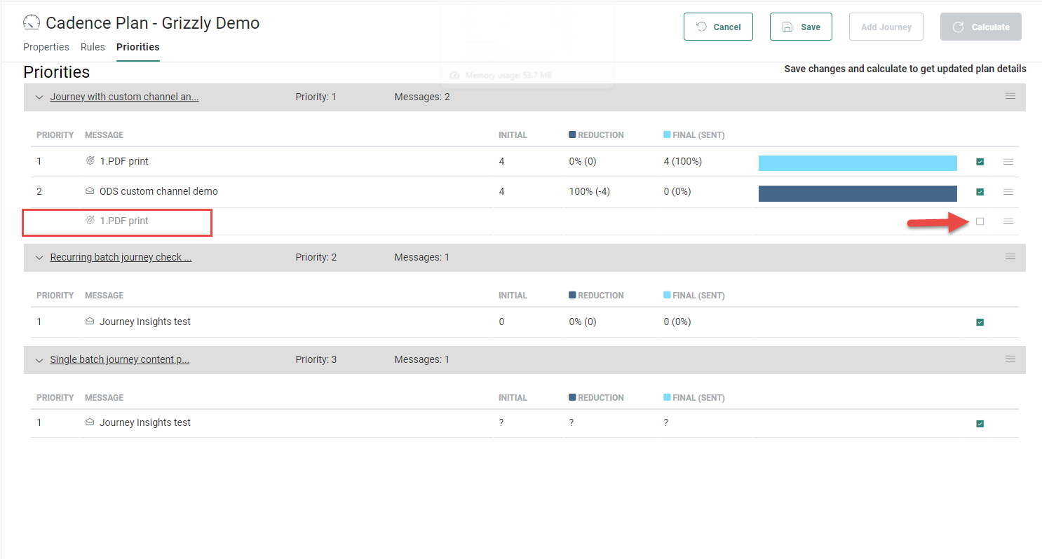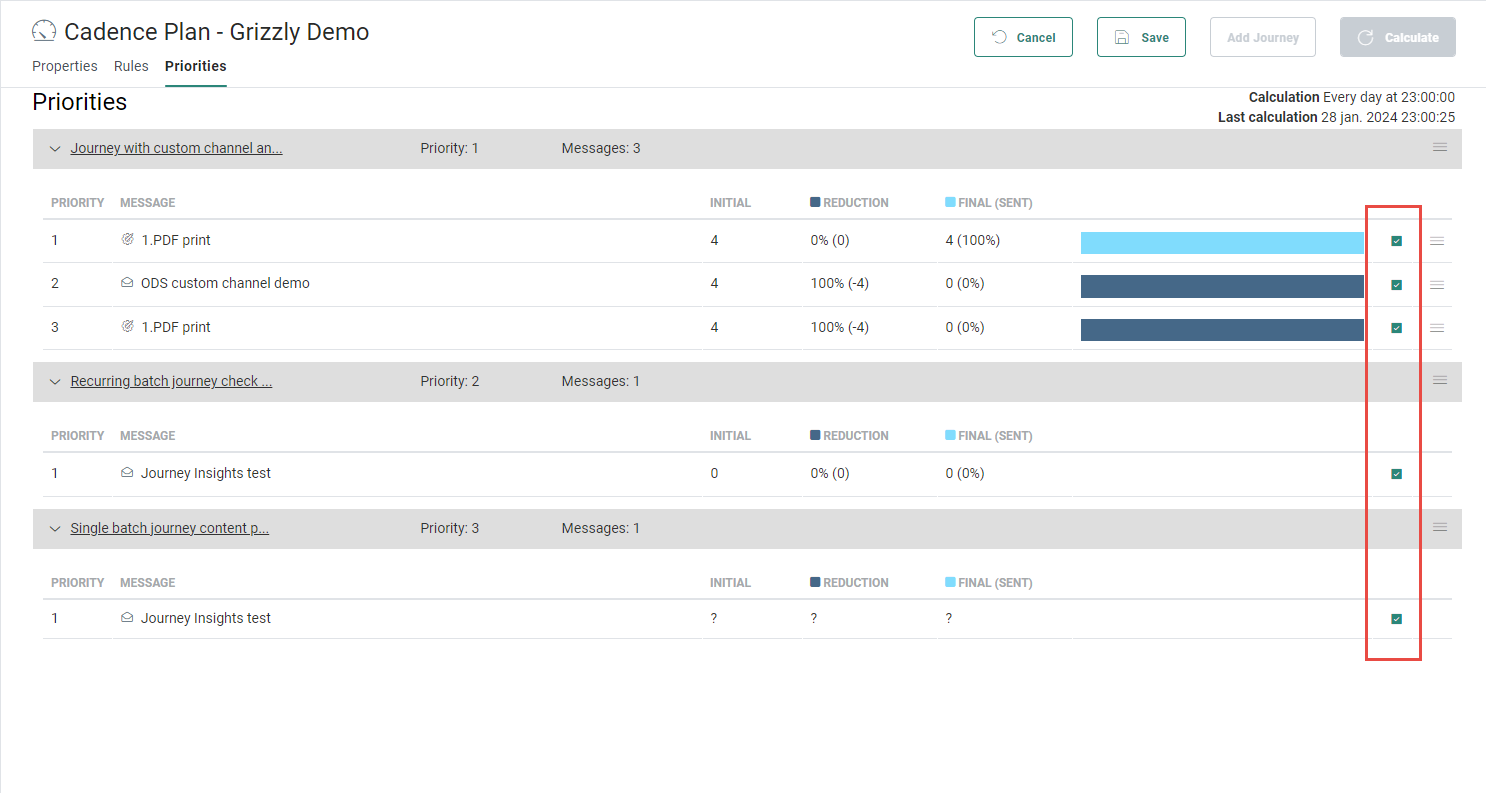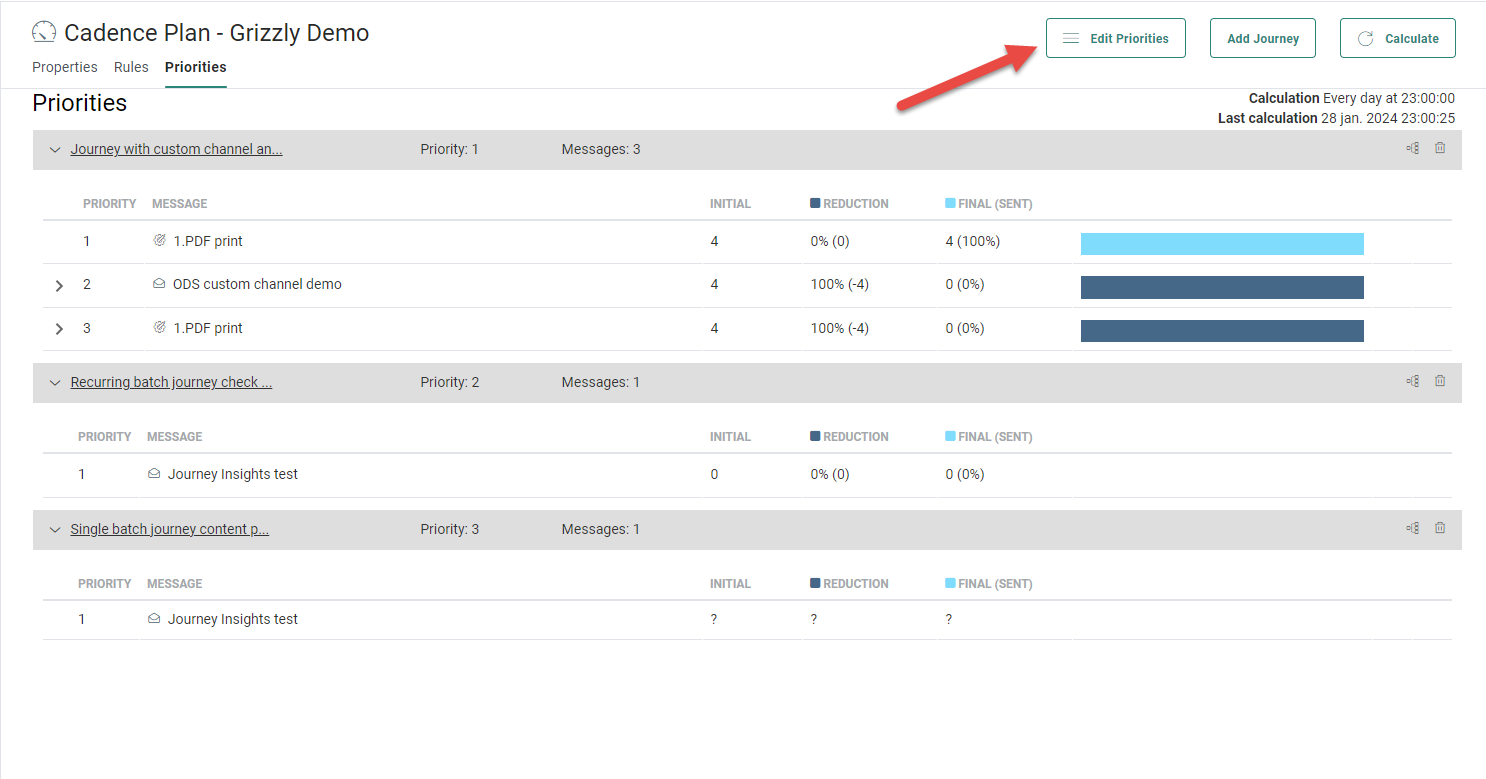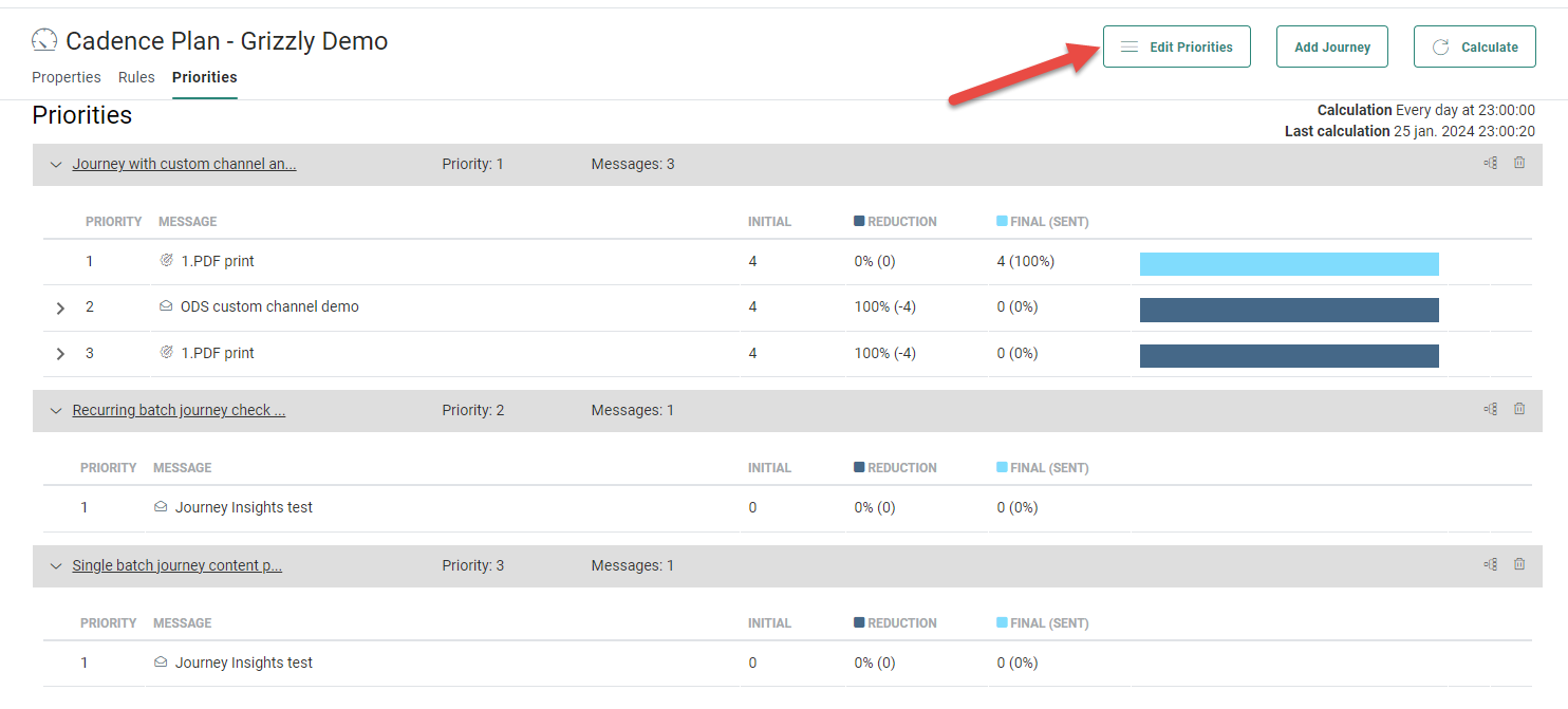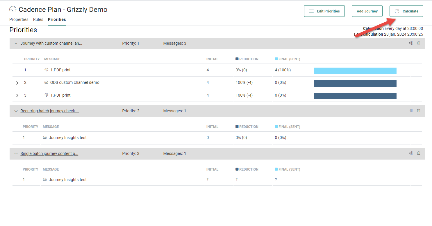 If you are starting out with a whole new Cadence Plan, adding new journeys to an existing plan or changing the priority of the journeys in the plan, it is always a good idea to recalculate the plan and check the numbers.