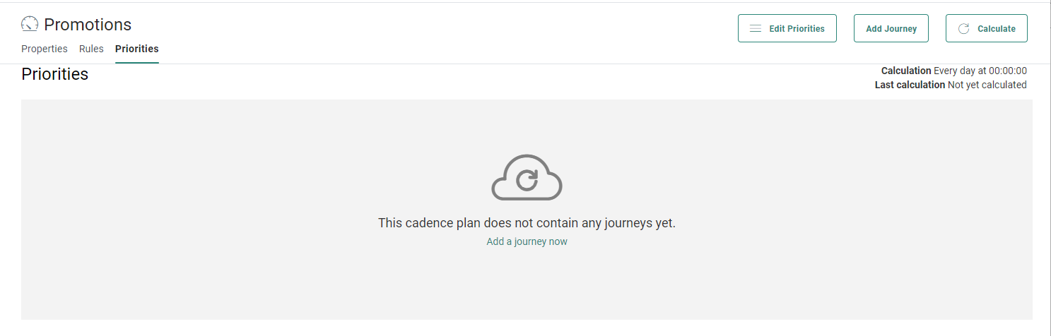 Note: When a journey is removed from the Cadence plan Priorities screen, it will still display the linked Cadence plan in the journey properties.