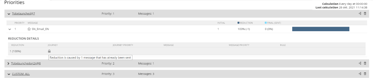 Moreover, for each message individually, a reduction report is provided with details on what journey caused the target reduction and what rule. To view the reduction report, expand the message: