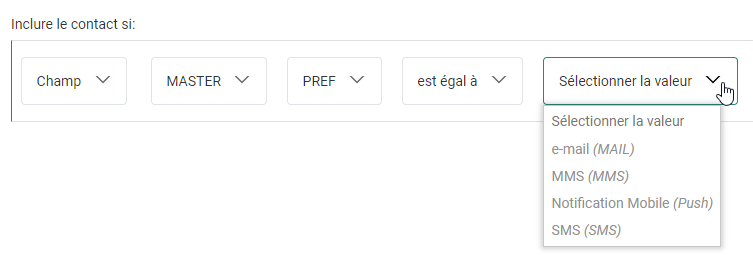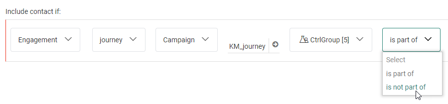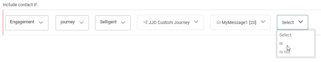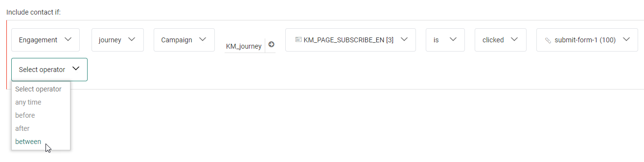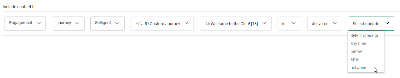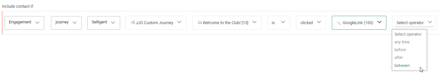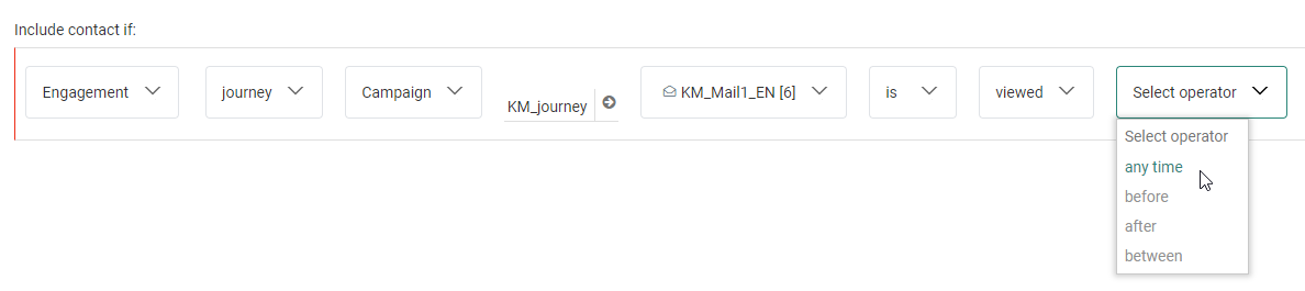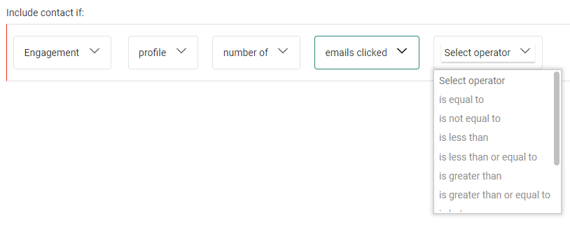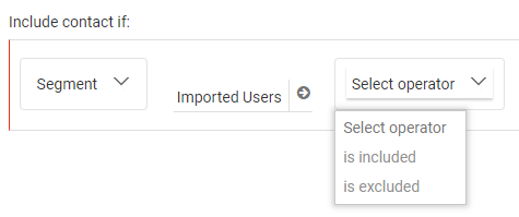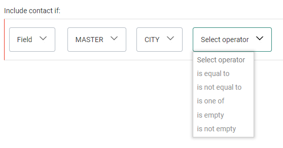 After your segment selection, an operator can be chosen from the next drop-down field.
