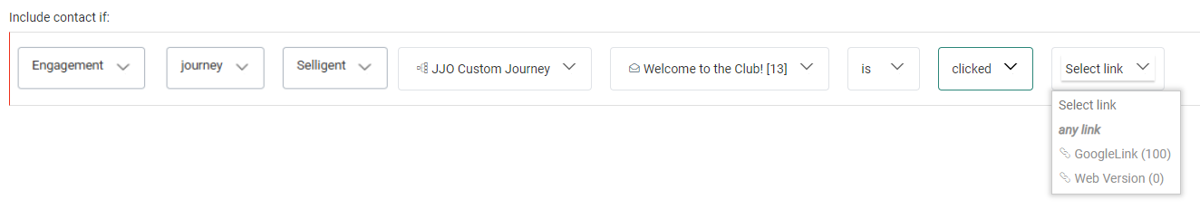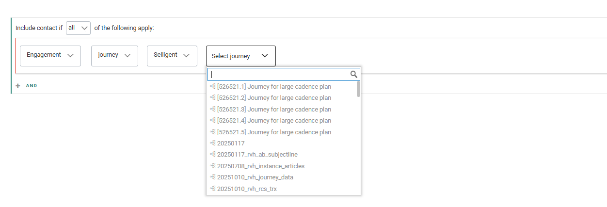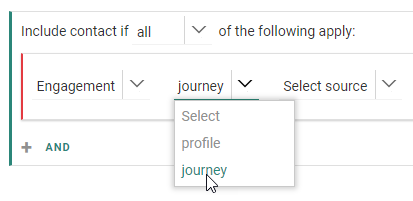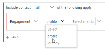 - Engagement — For filtering on profile metrics or journey interactions.