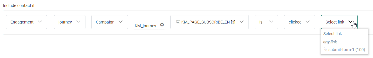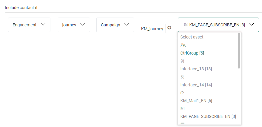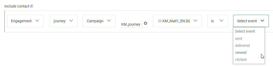 - Custom Event — Only applicable when defining an audience filter in Custom Journeys using the Custom Event entry component.