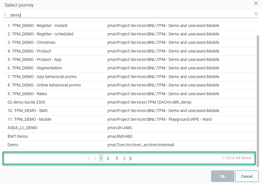 When you've selected a Campaign journey before, and open the journey selector for a new constraint (in the same Constraint Builder window), all folders and sub-folders that were expanded in the previous Campaign selection are now also shown as such, together with the scroll position of the last selection. No journey is selected in this case.