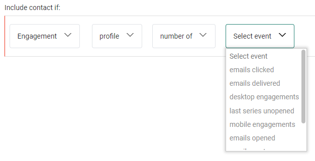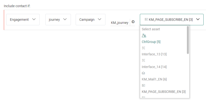 This is only available when the Interest tags feature is activated on your environment and configured for the list. - Segment — To include/exclude existing segments of the main list